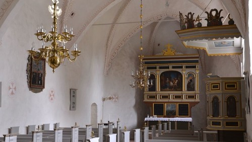 Fællessang i kirkerummet med musikledsagelse ved Dorthe Jelle Jensen på keyboard.